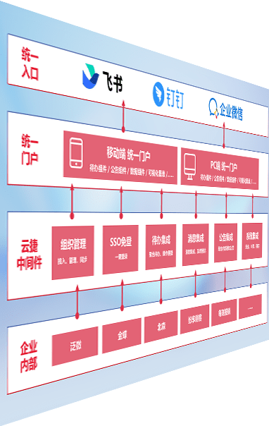 对协作平台提供支持服务,,,支持企业应用与协作平台对接,,包含组织同步、、、消息集成、、、、待办集成等。。。支持目前主流的协作平台:钉钉、、企微和飞书。。。。